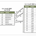 기본 메커니즘 - Sort (양쪽 집합을 JOIN 컬럼 기준으로 정렬) → Merge (정렬된 양쪽 집합을 서로 Merge) SELECT /* ordered use_merge(d) */ E.EMP_NO, E.ENAME, D.DNAME FROM EMP E, DEPT D WHERE D.DEPT_NO = E.DEPT_NO; ▼begin for outer in (SELECT DEPT_NO, EMP_NO, RPAD(ENAME, 10) ENAME FROM SORTED_EMP) loop -- outer loop for inner in (SELECT DNAME FROM SORTED_DEPT WHERE DEPT_NO = outer.DEPT_NO) loop -- inner loop dbms_output.put_line(o..
