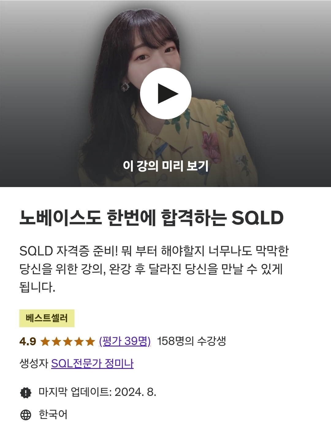 - 유데미 SQLD 강의 오픈 (7월)