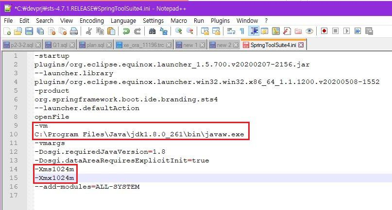8GB 램(RAM) 기준으로 1024가 적절.. 하다고 했으나 실행하다가 뻗어서 -Xms512m로 바꿈
