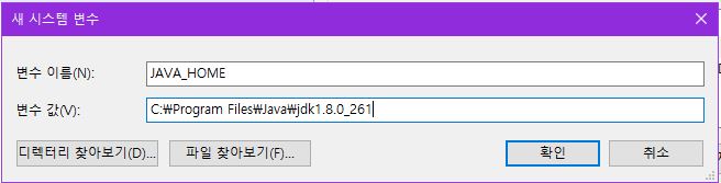 jdk-8u261-windows-x64.exe 다운로드 및 실행 (실행파일은 본인의 OS에 맞게 선택)