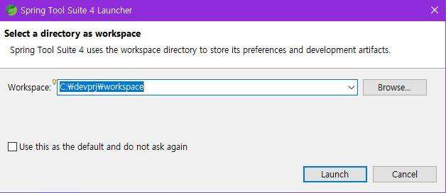 devprj 폴더 안에 workspace 폴더 생성